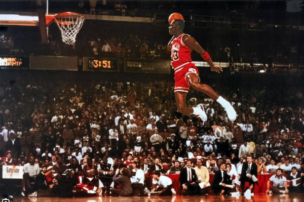 아마도 농구팬이 아니더라도 이 선수의 이름을 모르는 사람은 거의 없을 겁니다. NBA농구라는 종목을 전 세계에 알린 남자!! 그리고 농구라는 스포츠가 얼마나 멋지고 아름다울 수 있는지 알려준 남자!! 또 팀 스포츠라는 농구지만 한 선수의 영향력이 팀을 얼마나 바꿔 놓을 수 있는지를 증명했던 남자!! 은퇴 후에도 농구황제라 불리며 아직까지 GOAT(the Great Of All Time)를 논할 때 가장 최상단에 이름을 올리는 바로바로바로 마이클 조던입니다. Micheal Jordan!! 정말 이름도 멋지지 않습니까? 근데 얼굴도 매우 잘생겼습니다. 그리고 몸매는 두 말하면 잔소리죠. 그리고 에어조던이란 말처럼 점프력과 체공력은 가히 넘사벽이었습니다.