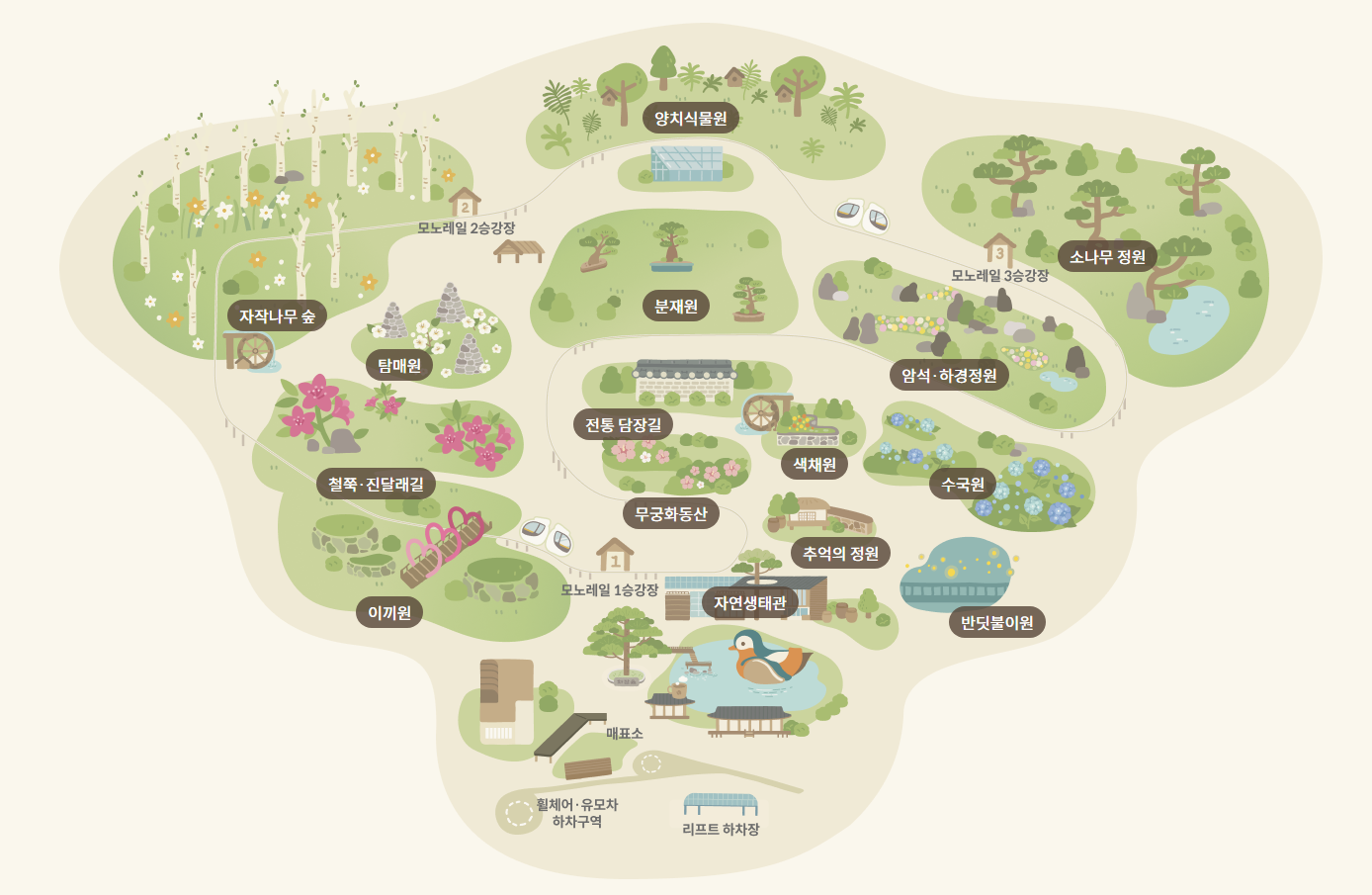 모노레일은 1구간, 2구간, 순환 - 이렇게 세 가지 프로그램으로 구성되어 있다. 사진 출처 화담숲 홈페이지