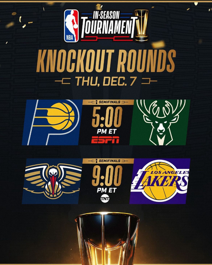이제 서부컨퍼런스 토너먼트 결승은 뉴올리언스 펠리컨스와 LA레이커스의 대결로 압축됐다. 양 팀의 경기는 앞서 동부컨퍼런스와 같은 날인 한국시간 12/8(금)에 펼쳐지며 시간은 오전 11시에 펼쳐진다.