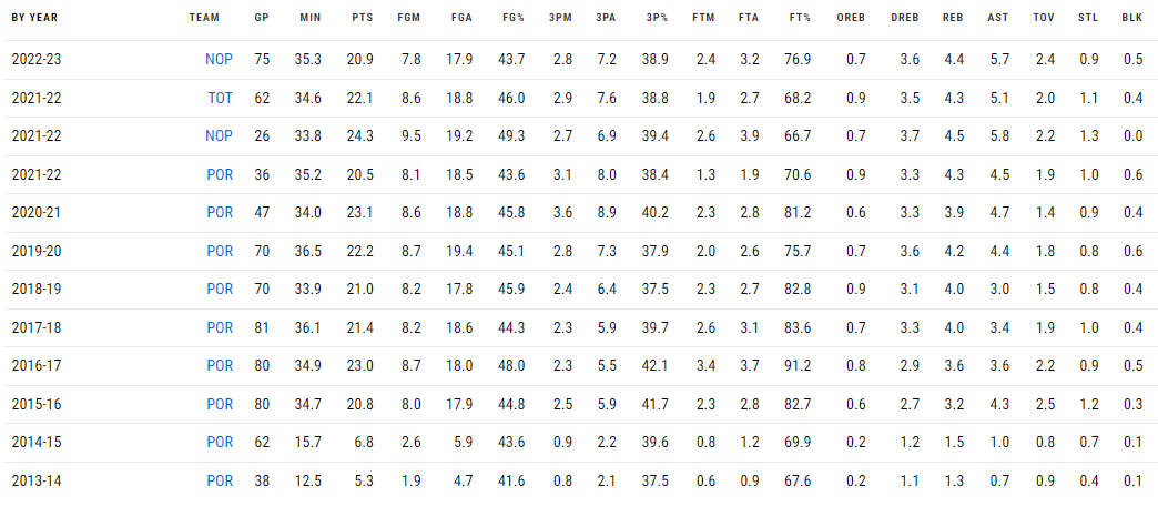 포틀랜드에서 데미안 릴라드와 함께 백코트 듀오로 활약하다 트레이드로 이적 이후 뉴올리언스를 이끌고 있다.